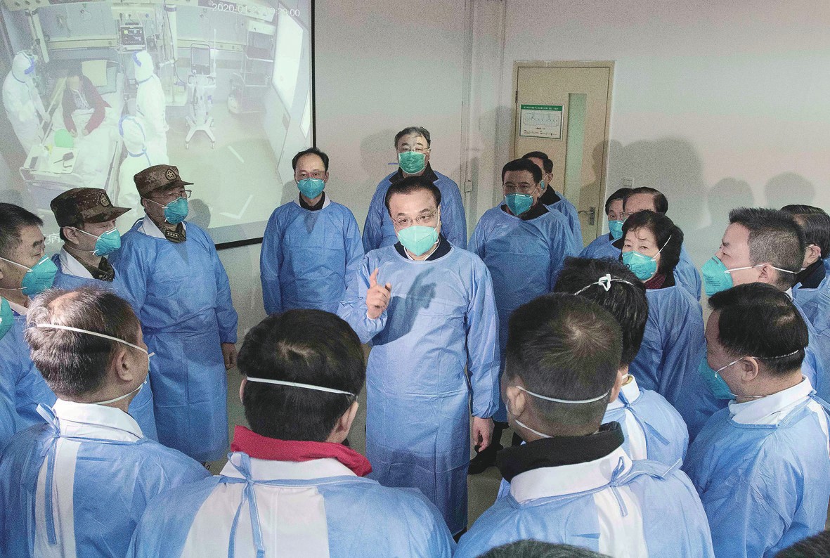 图⑿:2020年1月27日,李克强同志赴湖北省武汉市考察指导疫情防控工作,代表党中央、国务院慰问疫情防控一线的医务人员。