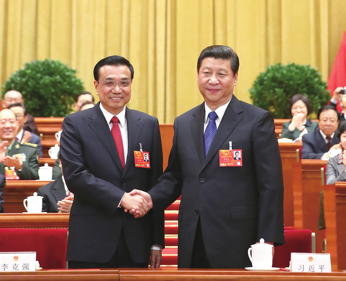 图①:2013年3月15日,第十二届全国人民代表大会第一次会议在北京人民大会堂举行第五次全体会议。会议经过投票表决,决定李克强为中华人民共和国国务院总理。这是习近平同志和李克强同志亲切握手。新华社记者兰红光/摄