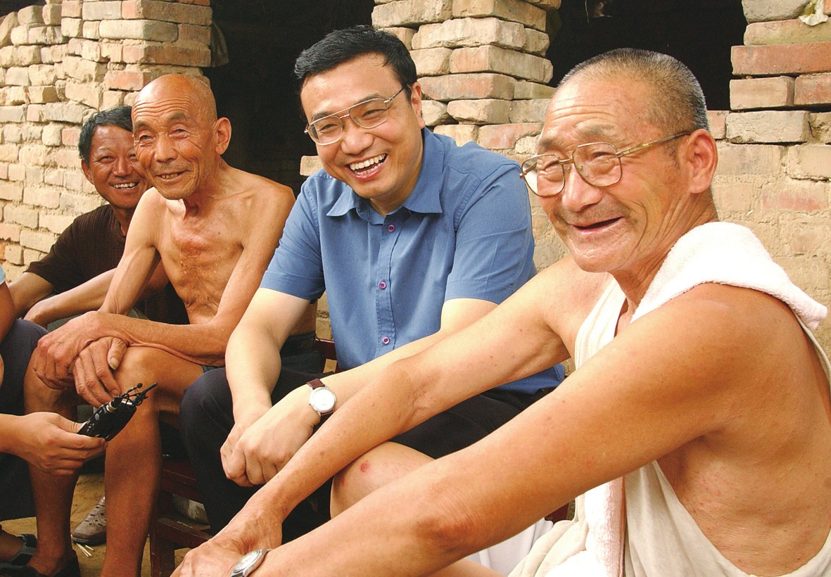 图④:2003年8月8日,李克强同志在河南省新乡市调研。这是李克强同志在原阳县桥北乡马庄村与村民亲切交谈。