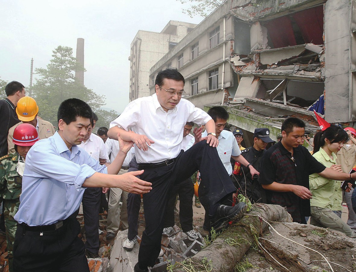 图⑧:2008年5月19日,李克强同志在四川地震灾区察看灾情。