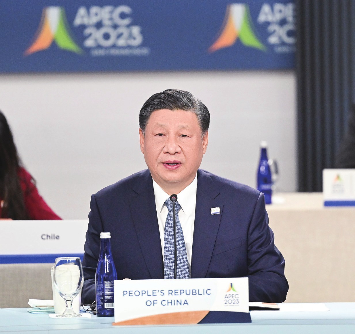 (图)当地时间十一月十七日上午,亚太经合组织第三十次领导人非正式会议在美国旧金山莫斯科尼中心举行。国家主席习近平出席会议并发表题为《坚守初心团结合作携手共促亚太高质量增长》的重要讲话。新华社记者李学仁/摄