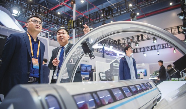 11月20日,在2023中国5G+工业互联网大会创新成果展上,工作人员向参观者介绍展品。当日,2023中国5G+工业互联网大会在武汉开幕。大会以“数实融合大力推进新型工业化”为主题,举办1场开幕式、2场专题会议、近20场平行会议和多场特色活动,并设立2023中国5G+工业互联网大会创新成果展,集中展示最新创新成果。