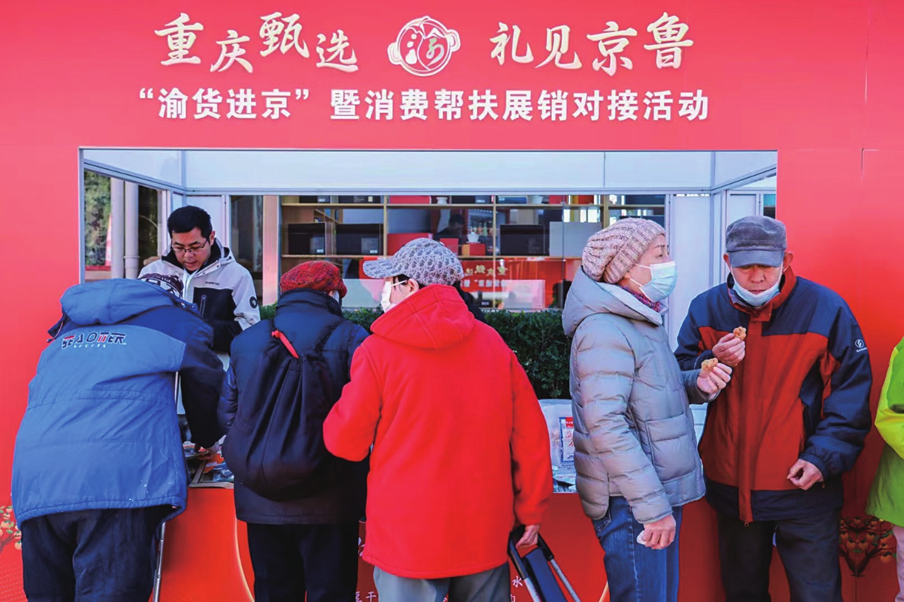 近日,琳琅满目的重庆“土特产”空降首都,这也意味着以“重庆甄选,礼见京鲁”为主题的“渝货进京”暨消费帮扶展销对接活动启动。本次展销对接活动由重庆市乡村振兴局、重庆市商务委员会、重庆市人民政府驻北京办事处等单位联合主办,重庆市工商联等单位协办。活动结束后,这些产品还将在北京重庆饭店、重庆土特产展销中心持续售卖,持续推动渝货进入首都人民的餐桌。活动仪式上,还举行了消费帮扶产销对接签约仪式,共有86家单位签约,签约总金额超25.9亿元。据统计,线上单场直播达到在线观看人数共计500万,线上线下销售数额达300万元。销售过程中,重庆特产火锅底料、酉阳茶油等单品备受关注。重庆市乡村振兴局/供图