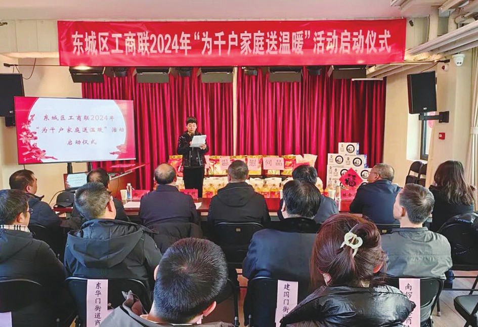 【本报讯】近日,北京市东城区工商联2024年“为千户家庭送温暖”活动启动。东城区委常委、统战部部长薛国强,区委统战部副部长、区工商联党组书记易月明,安定门街道工委书记李晓光等负责人出席活动,区工商联所属17个街道商会、东城园商会和青创会代表、社区居民及学生代表等50余人参加活动。