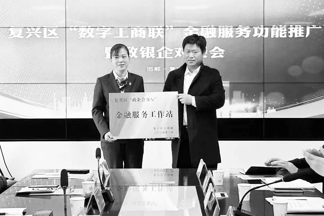 活动介绍“数字工商联”金融服务平台及贷款融资相关政策,复兴区工商联向建设银行河北省邯郸分行复兴支行授牌“政企会客厅-金融服务工作站”,与建设银行河北省邯郸分行复兴支行签署长期金融服务战略合作协议。