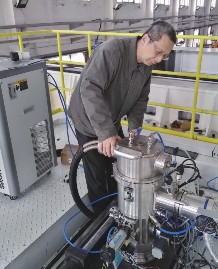 (图)桂林狮达技术股份有限公司董事长莫力林在车间检查电子枪