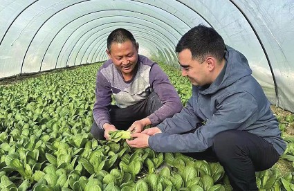 (图)北京银行驻村工作队指导村民通过现代化蔬菜种植推动乡村振兴。北京银行供图