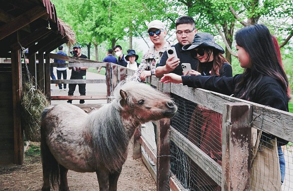 随着“五一”假期临近,京郊旅游即将迎来一波高峰。京津冀地区广阔的天然氧吧——碧波岛,是北京市平谷区金海湖的综合性度假岛,现由北度联盟(北京)酒店管理有限公司经营管理。岛内集酒店住宿、餐饮娱乐、会议团建于一体,还有梅花鹿、小矮马、孔雀等呆萌小动物,年接待游客十余万人。图为平谷区金海湖碧波岛,游客跟小矮马亲密互动。