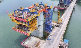 日前,成渝中线高铁全线首座隧道——黄连堡隧道顺利贯通,玄天湖大桥所有桩基施工也已全部完成,成渝中线高铁全路段建设正有序推进。成渝中线高铁是我国“八纵八横”高铁网沿江通道的重要组成部分,正线全长292公里,设计时速350公里。图为在重庆市铜梁区拍摄的成渝中线高铁玄天湖大桥建设现场(无人机照片)。