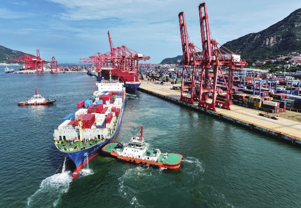 一艘货轮满载集装箱缓缓驶离江苏省连云港港集装箱码头泊位。今年以来,江苏各地在加快对外开放中加速提升对外服务能力,港口经济发展质效稳步提升。1-7月,江苏各地港口持续开足马力,全省累计完成港口货物吞吐量20.2亿吨,同比增长3.9%,位居全国第一;集装箱吞吐量也涨势明显,达到1587万标箱,同比增长11.8%。