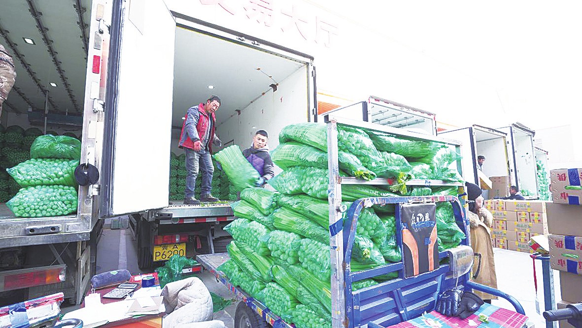 (图)首衡高碑店市场蔬菜交易区,商户正在搬运蔬菜