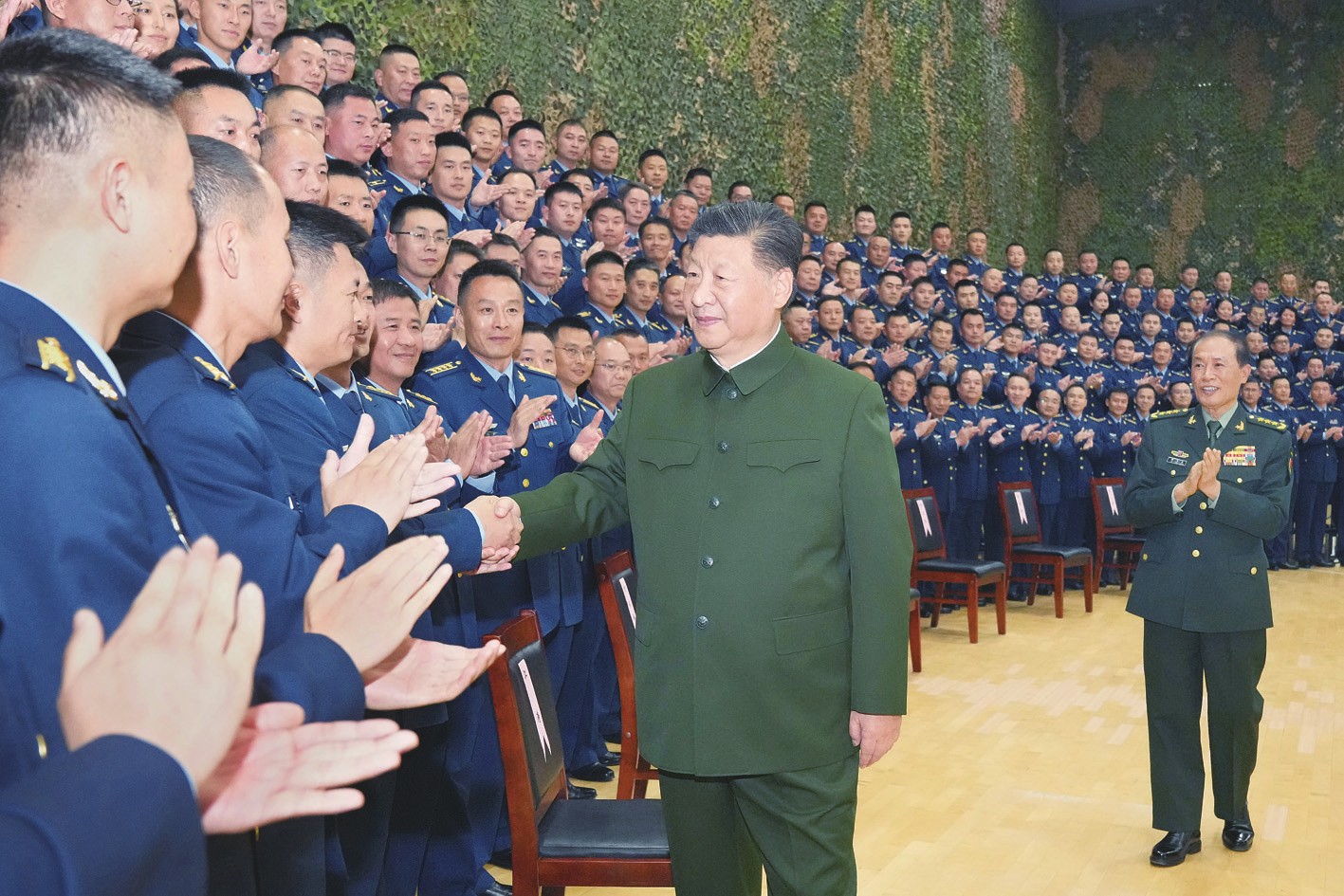 深秋时节,荆楚大地层林尽染、景色宜人。下午3时许,习近平来到空降兵军机关,在热烈的掌声中,亲切接见空降兵军官兵代表,同大家合影留念。