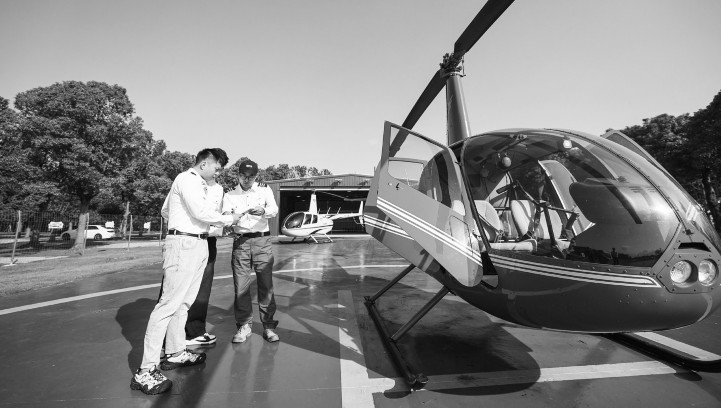 11月5日,在湖州米旗通航直升机飞行基地,飞行教员(右一)带领学员进行日常培训。湖州米旗通航服务有限公司是一家民营公司,专注于低空经济赛道的商业探索,在南太湖开启体验飞行、空中广告、空中拍摄和私用驾驶员执照培训等飞行项目。该企业于2024年5月在湖州太湖南岸成立飞行基地,为游客提供假期“坐直升机看太湖”“开直升机去吃大闸蟹”等创意玩法,这一新业态吸引了周边的亲子家庭和年轻人、企业团建打卡。近年来,浙江省湖州市吴兴高新区充分发挥毗邻太湖的地理优势,推进低空经济发展,助力太湖新溇港农文旅和全域旅游绿色高质量发展,通过融入太湖风情、弘扬溇港文化,全面引进新经济、新项目,本土美食、休闲营地、度假庄园、暖村宿集等文旅精品项目沿着滨湖大道拔地而起,吸引越来越多的游客来太湖边休闲度假和亲子研学。新华社记者徐昱/摄