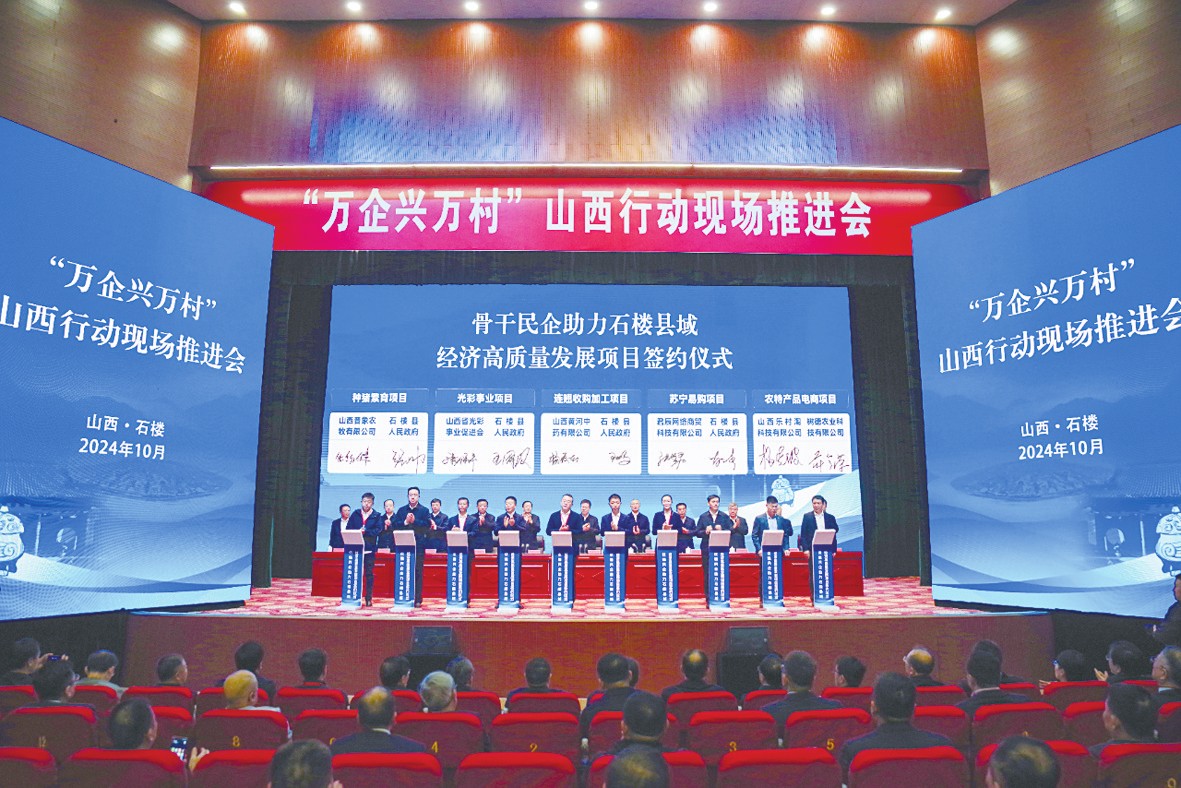 10月12日至13日,山西省“万企兴万村”行动现场推进会暨民营企业助力县域经济高质量发展大会,在全省乡村振兴重点帮扶县之一的石楼县召开。会议得到全国工商联与山西省委、省政府大力支持。其间,发布2023年度“万企兴万村”山西行动省级先进典型(第二批)和2024年山西省民营企业100强榜单。会议现场,民营企业签约9个乡村振兴项目,拟投资额达20.2亿元。