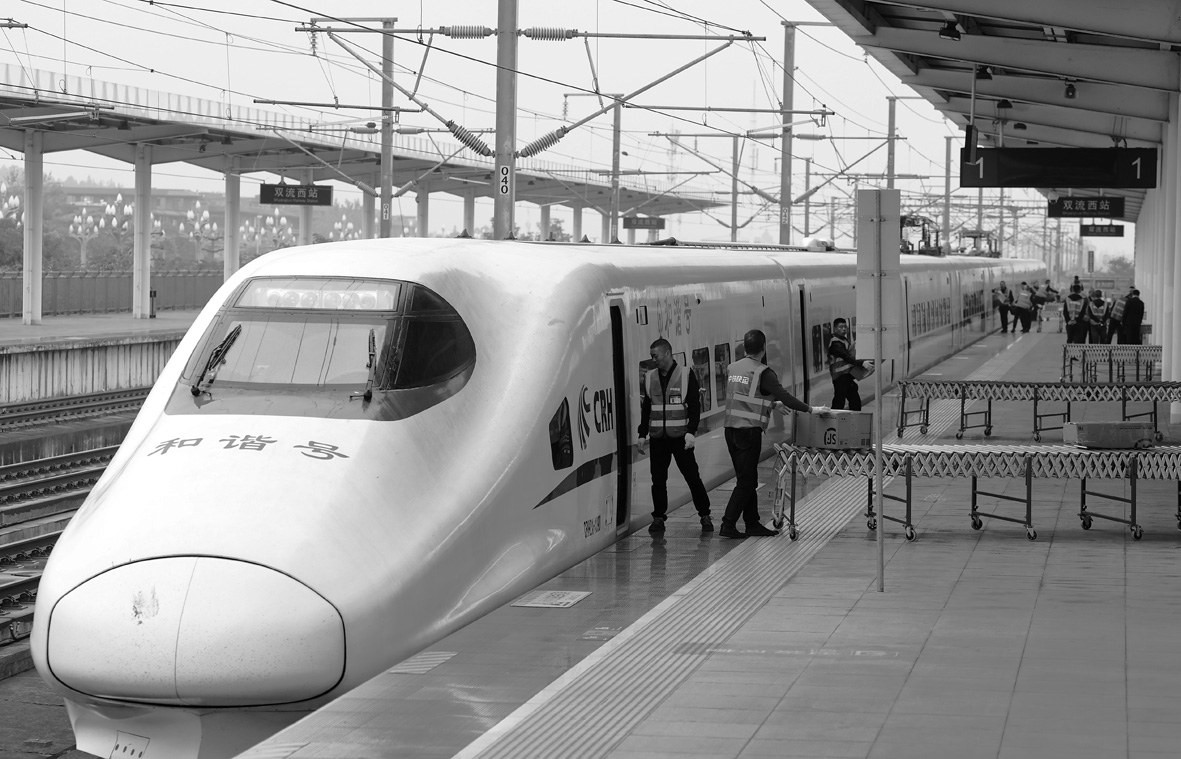 11月11日,在成都双流西站,工人将电商快件从动车上搬运下来。今年“双十一”期间,中国铁路成都局集团有限公司在昆明洛羊镇站与成都双流西站之间开行的高铁快运动车组列车的基础上,持续优化运力供给,助力“双十一”电商快件运输高效顺畅。据悉,11月4日至11日,双流西站高铁快运业务日均装运货物近8000件、50余吨,主要货物品类为日用百货、服装服饰、电子产品等。新华社记者江宏景/摄