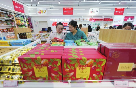 11月17日,旅客在湖北汉口车站中欧班列进口商品保税店选购商品。位于湖北汉口车站的中欧班列进口商品保税店是“采、运、销”一体化的惠民项目,商品来自德国、意大利、土耳其等中欧班列沿线国家,涵盖食品、饮料、化妆品等多个品类,通过中欧班列(武汉)返程车运回国内。新华社记者邢广利/摄