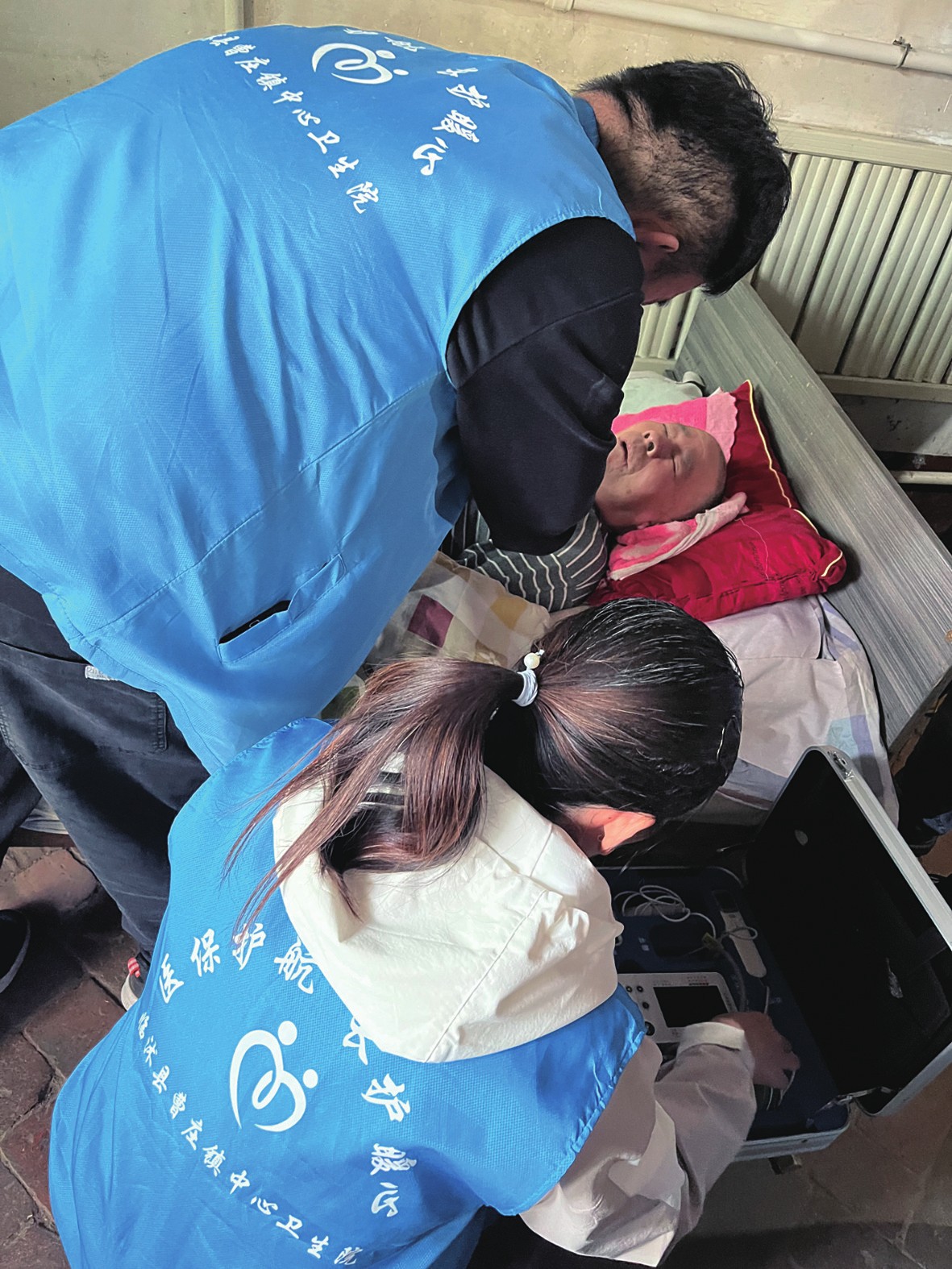 图三:曹庄镇中心卫生院医护人员为王大爷检查身体