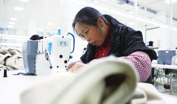 日前,工人在甘肃省平凉市泾川县中小企业孵化园内一家服装生产企业的车间内作业。甘肃省平凉市泾川县把做大做强工业作为强县富民的重要支撑,持续优化中小企业创新创业环境,培育和孵化科技型中小企业,通过产业政策引领、孵化载体建设、精准创新服务和投融资助力等举措,推动中小企业高质量发展,为县域经济发展增添动能。新华社记者陈斌/摄