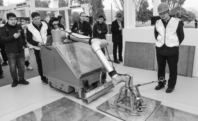 这是12月3日在第二届“中国建造·慧享未来”建筑机器人大赛上拍摄的机器铺贴机器人竞赛现场。当日,由重庆市住房和城乡建设委员会、四川省住房和城乡建设厅主办的第二届“中国建造·慧享未来”建筑机器人大赛在重庆大学虎溪校区举行。本次大赛结合建筑机器人及智能产品研发创新实际设置了创意设计、性能表演、实战比拼3大竞赛类别,通过线上报名和筛选后,全国19个省市的104个团队、122项产品作品入围。新华社记者王全超/摄
