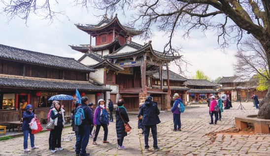 春日,云南省大理白族自治州剑川县的沙溪古镇迎来众多观光游客。古镇位于金沙江、澜沧江、怒江三江并流自然保护区东南部,历史上曾是滇藏茶马古道的重要驿站。古镇保存着传统村落风貌,包含大量明清时期的民居院落、古戏台等历史遗存。
