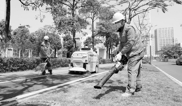 3月19日,在深圳市坪山区石井街道,环卫机器人与环卫工人进行协同作业。在深圳市坪山区石井和坑梓两个街道,道路上不时能看到彩色的环卫机器人出没。它们能够自主识别垃圾、自动返回基站倒垃圾并加水,与环卫工协同配合完成复杂道路清扫工作……机器人在路面忙碌的同时,街道指挥中心的大屏显示它们的实时轨迹和状态,供工作人员随时“调兵遣将”。近年来,深圳市坪山区积极打造全域全时全场景人工智能环卫机器人集群应用示范场景,已在坑梓街道、石井街道等区域建成人工智能环卫作业示范区,设立2个人工智能环卫运营指挥中心和8个智能补给站,投入59台人工智能环卫设备。据坪山区城管局介绍,通过一段时间的实际运用,环卫工人的作业强度和作业时间有所下降,预计今年将在全区六个街道适合的区域实现全域的人工智能环卫作业全覆盖。新华社记者毛思倩/摄