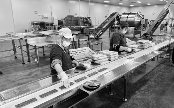 近日,在沈阳市阳阳食品有限公司,工人将辣条装袋。