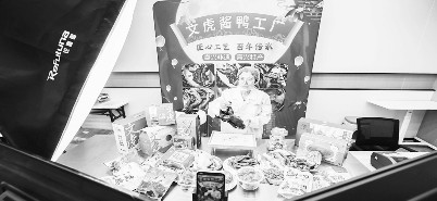 日前,在位于嘉兴南湖区的一家老字号企业直播间内,工作人员在直播销售酱鸭。近年来,浙江省嘉兴市南湖区推动传统食品加工业向“文化+科技+农业”复合型产业转型,全面推进老字号从生产端到消费端的全链条革新,助力农业新质生产力发展。新华社记者徐昱/摄