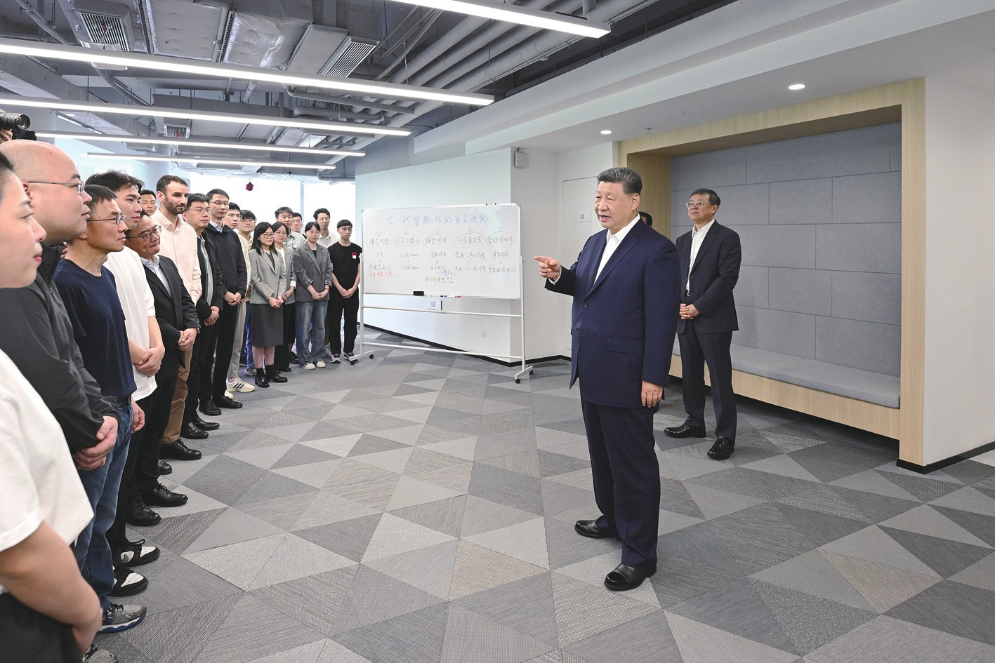 在"模速空间"3层,一场以"下一代智能体的自主进化"为主题的沙龙正在举行。习近平高兴地参与进来,同现场青年创新人才亲切交流。大家纷纷向总书记汇报所在团队开展人工智能技术研究和产业应用的收获体会。习近平对大家说,人工智能是年轻的事业,也是年轻人的事业。我们正在全面推进强国建设、民族复兴伟业,正是年轻一代展示才华、大显身手的好时候。实现中华民族的伟大梦想,寄希望于年轻人。大家要怀爱国之心、立报国之志、增强国之能,把个人奋斗同国家前途命运紧紧联系在一起,跑好历史的接力棒,在推进中国式现代化的宽广舞台上绽放绚丽的青春光彩。