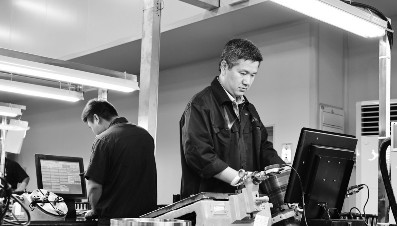 4月25日,工人在检测调试返厂保养的轴承。