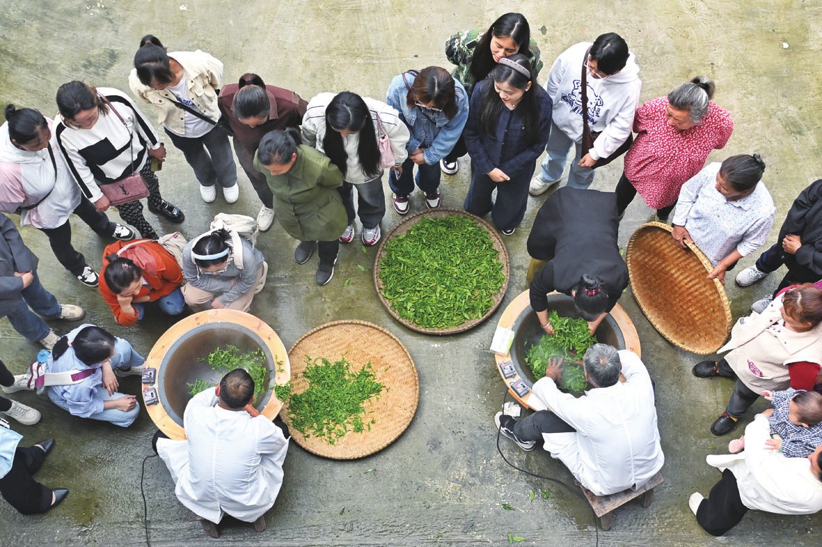 图为在“乡村振兴女子学堂”打古镇普照村教学点,手工制茶技师在教授学员制茶技艺。新华社记者刘坤/摄