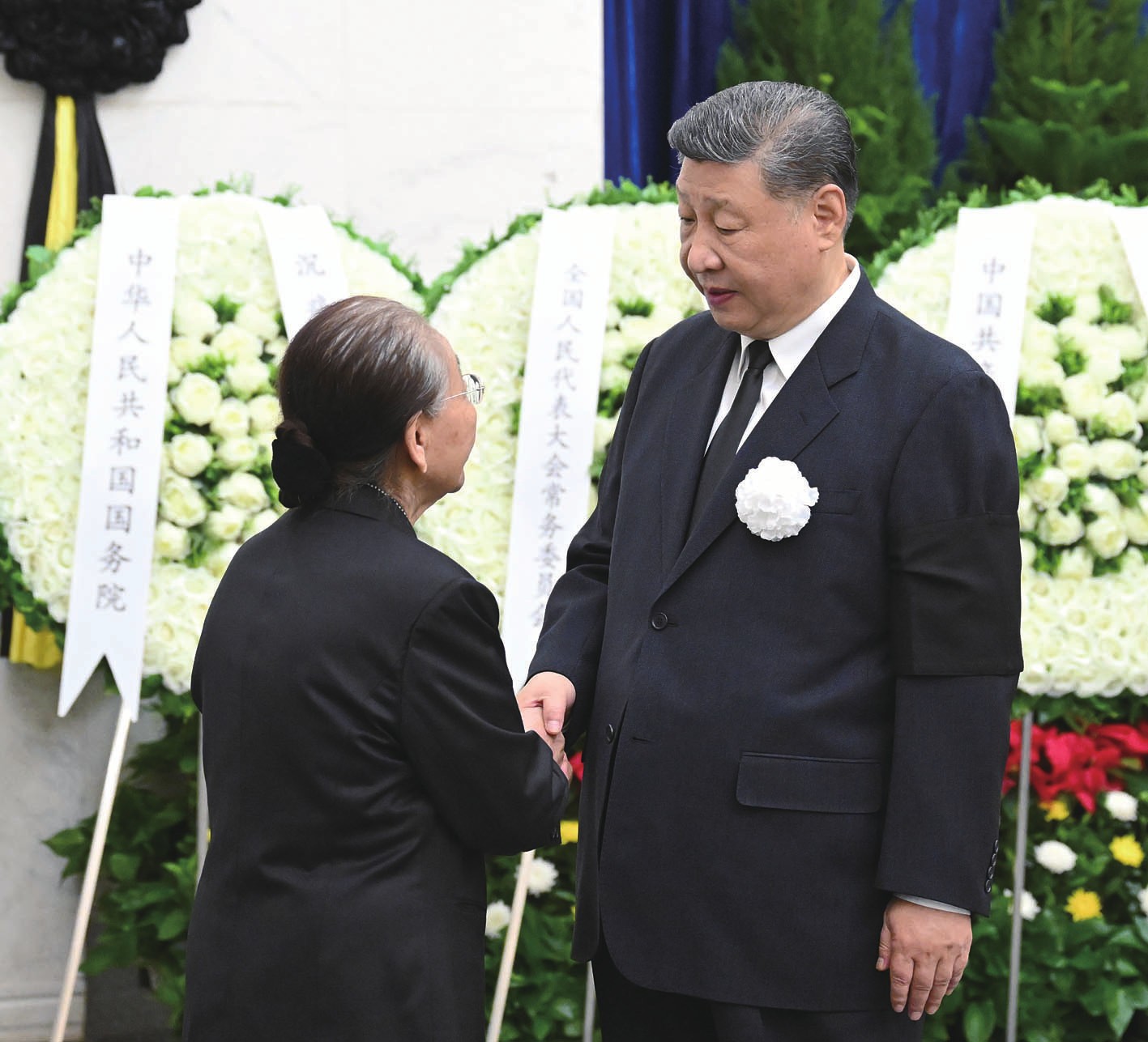 (图)6月12日,热地同志遗体在北京八宝山革命公墓火化。习近平、李强、赵乐际、王沪宁、蔡奇、丁薛祥、李希等前往八宝山送别。这是习近平与热地亲属握手,表示深切慰问。新华社记者谢环驰/摄