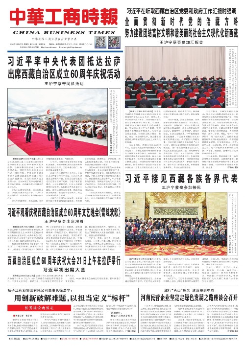 西藏自治区成立60周年庆祝大会21日上午在拉萨举行