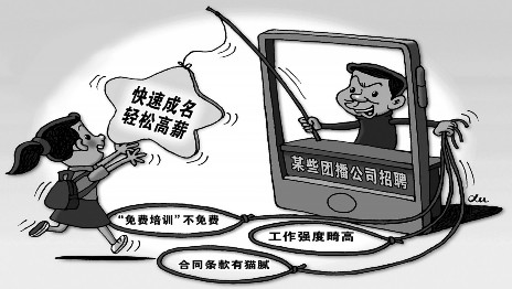 “高薪”是许多团播公司招聘时的宣传口号,但记者调查发现,所谓的“高薪”背后藏着“免费培训”不免费、合同条款有猫腻、工作强度畸高等许多陷阱。新华社发徐骏/作