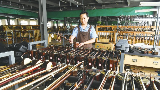 日前,工人在河北省肃宁县一家乐器生产企业车间内制作二胡。近年来,河北省肃宁县积极引导当地传统民族乐器企业转型升级,逐步构建现代化、企业化生产经营模式,并引进了钢琴、提琴等西洋乐器,着力推进“民族+西洋”乐器产业集群的形成,为县域经济高质量发展注入活力。新华社记者牟宇/摄