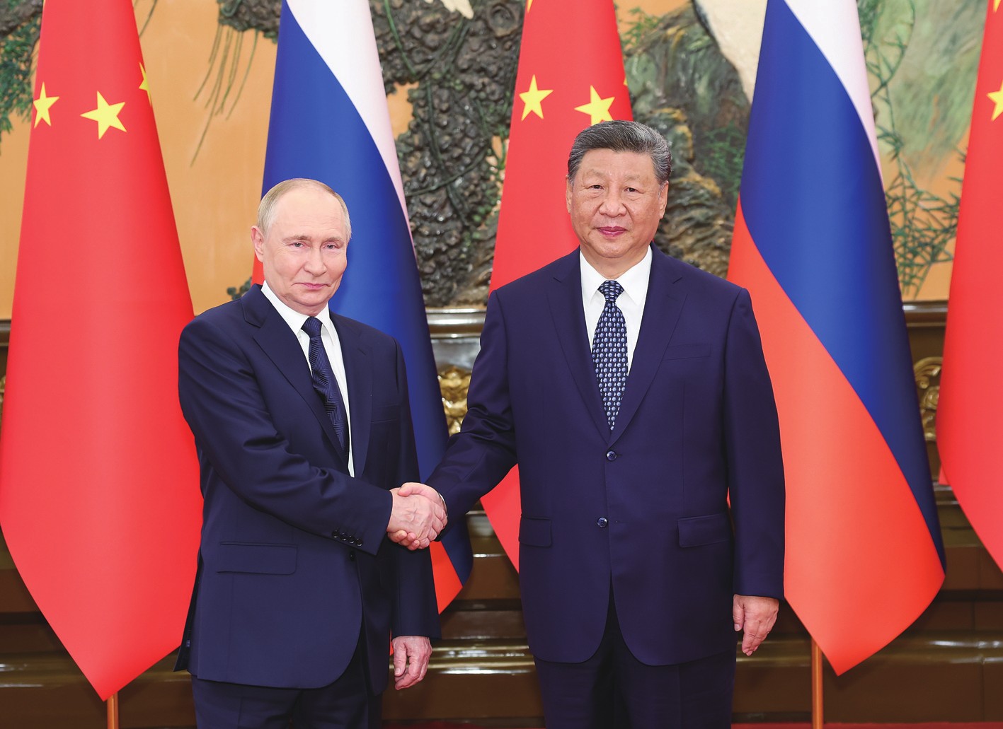 习近平指出,中俄两国元首相互出席对方国家举办的纪念世界反法西斯战争胜利庆典,充分彰显了作为第二次世界大战主要战胜国和联合国安理会常任理事国的大国担当,展示了维护二战胜利成果、捍卫正确二战史观的坚定决心。我提出全球治理倡议,就是要会同所有志同道合国家,坚定捍卫联合国宪章宗旨和原则,推动建设更加公正合理的全球治理体系。中俄两国都强调主权平等、国际法治、多边主义,要继续在联合国、上海合作组织、金砖国家、二十国集团等多边平台加强协作,携手推动构建人类命运共同体。