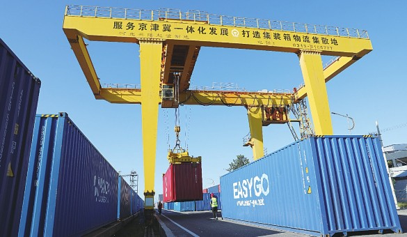 (图)9月6日,北京平谷马坊铁路站正在装卸集装箱。本报记者成钰/摄
