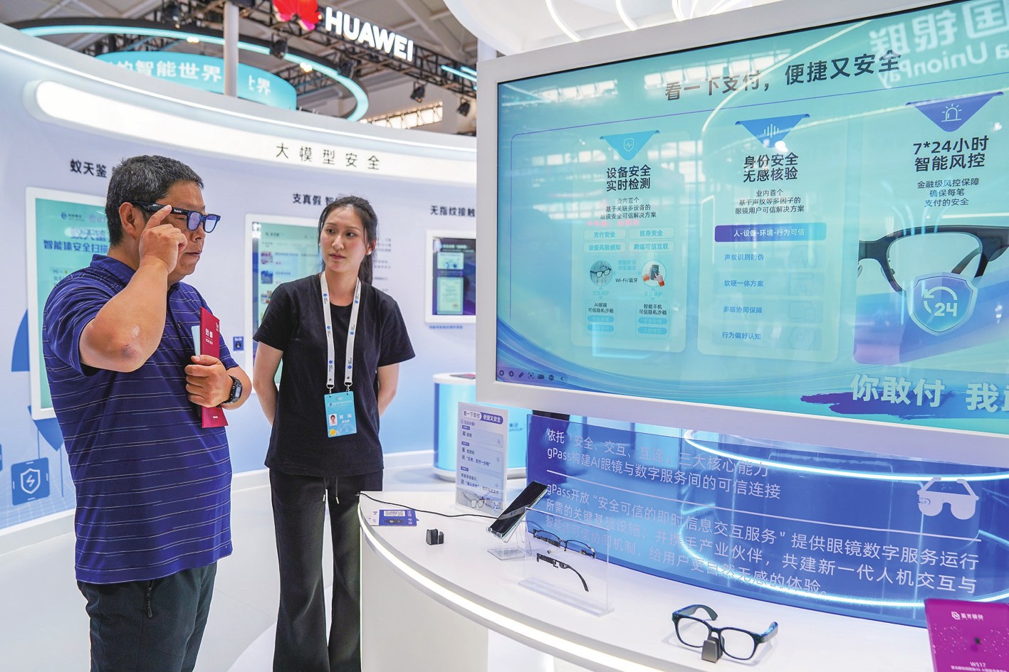 以“网络安全为人民,网络安全靠人民——以高水平安全守护高质量发展”为主题的2025年国家网络安全宣传周在云南昆明9月15日开幕。图为观众在云南昆明举行的2025年国家网络安全宣传周配套活动——网络安全博览会暨网络安全产品和服务国际推介会上体验智能眼镜。新华社记者彭奕凯/摄