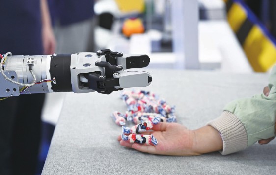 九月二十日,在二○二五世界制造业大会上,机器人抓取糖果放到小朋友手上。九月二十日,二○二五世界制造业大会在安徽省合肥市开幕。大会为期四天,以﹃智造世界·创造美好﹄为主题,举办开幕式暨主旨演讲、重大项目对接、﹃十四五﹄制造业发展成就展示、重点产业链供应链供需对接、大会发布等活动。新华社记者黄博涵/摄