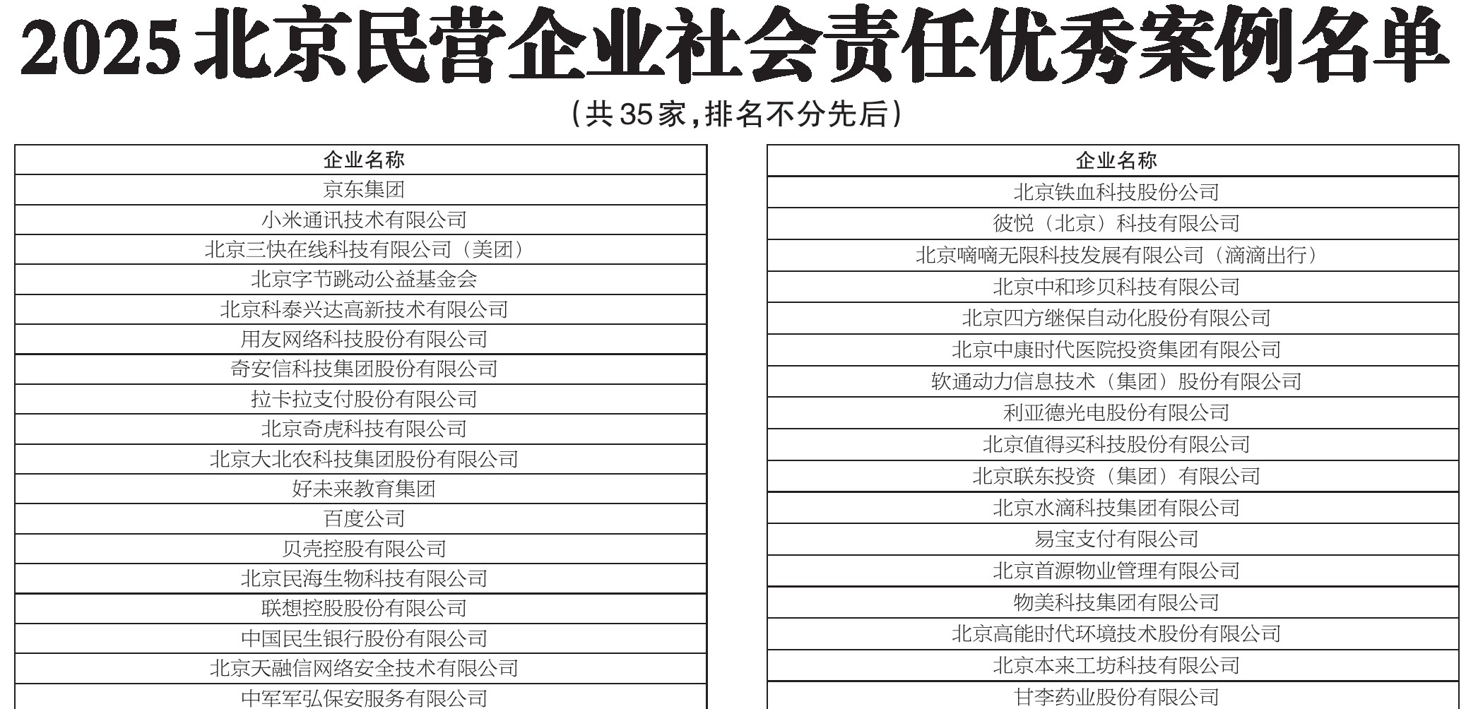 2025北京民营企业社会责任优秀案例名单