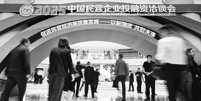 9月24日,与会嘉宾步入2025中国民营企业投融资洽谈会会场。9月24日,由科技部、天津市人民政府共同主办的2025中国民营企业投融资洽谈会在天津开幕。本届民洽会以“促进民营经济高质量发展——以新提质共创未来”为主题,吸引了来自各省区市发展改革委代表、央企国企、民营企业、金融机构、投资机构、高校及研发机构、媒体等共计2000余人参会,旨在搭建高能级产融对接平台,推动民营经济健康发展、高质量发展。新华社记者赵子硕/摄