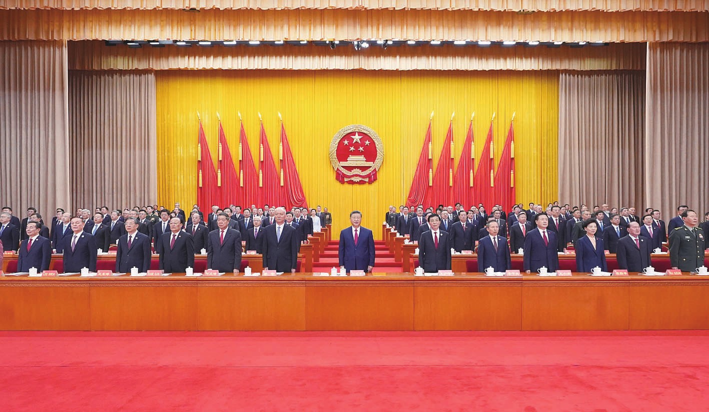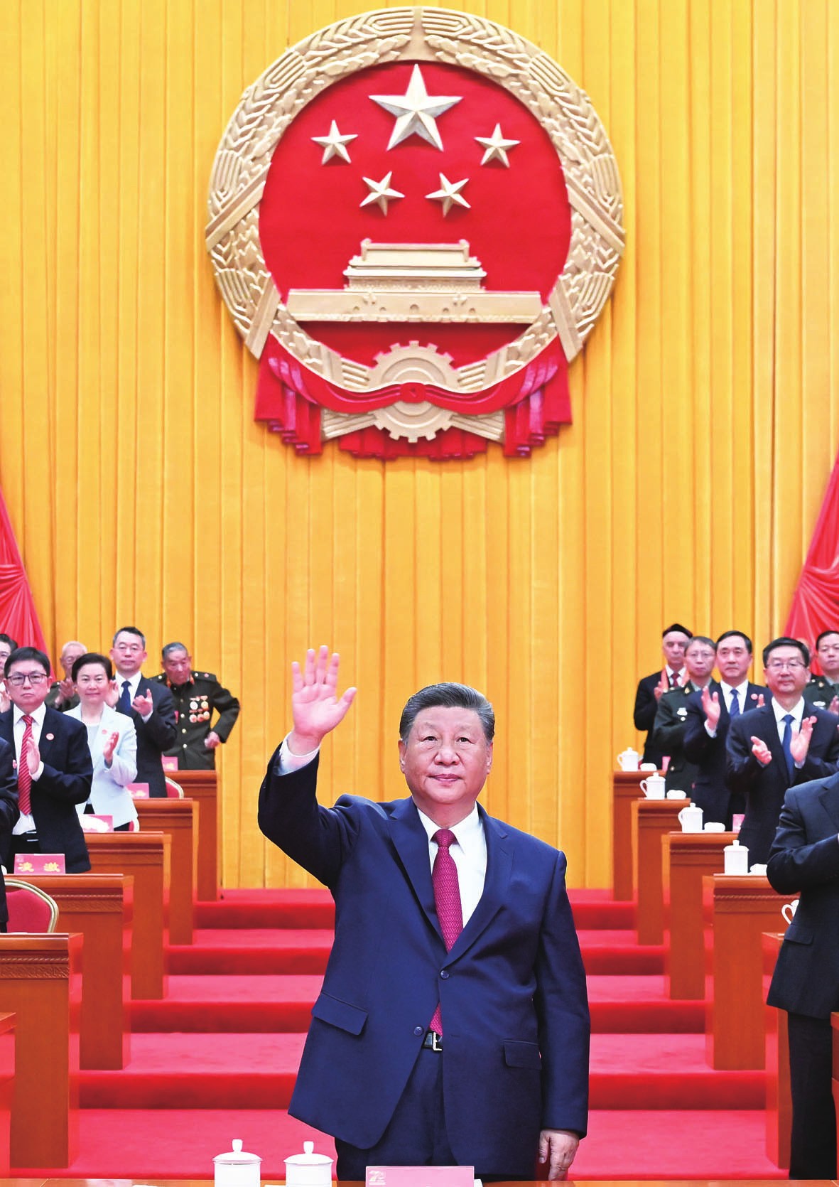 (图2)9月25日上午,新疆维吾尔自治区成立70周年庆祝大会在新疆人民会堂隆重举行。中共中央总书记、国家主席、中央军委主席习近平出席庆祝大会。王沪宁、蔡奇出席大会。