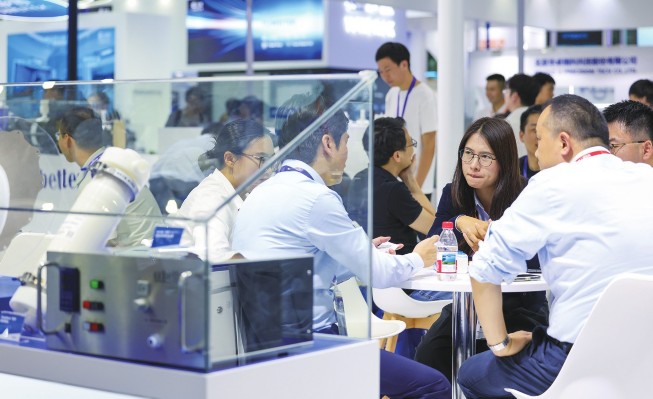 10月15日,客商在一家半导体企业展台交流。10月15日,2025湾区半导体产业生态博览会(湾芯展)在深圳开幕,本届湾芯展展览面积超6万平方米、参展企业超600家。比亚迪、富士康、大疆、长江存储、华虹集团等约5000名头部企业专业采购商参展,共享市场机遇。新华社记者毛思倩/摄