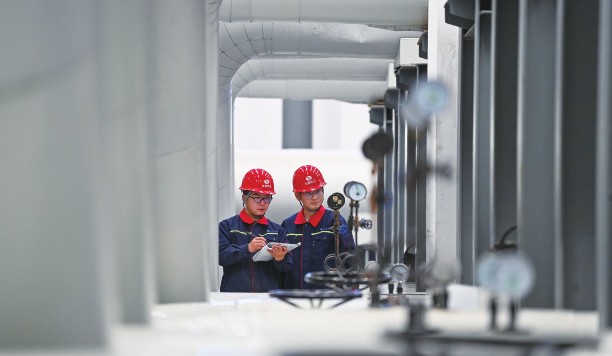 在太原市热力集团有限责任公司中继能源站,工作人员检查、记录设备运行情况(10月19日摄)。近期,山西多地出现降温降雨天气。为应对冷空气影响,山西省太原市于10月19日提前启动供热工作,并通过加强巡检、24小时监控等措施,保障群众温暖舒适过冬。新华社记者杨晨光摄