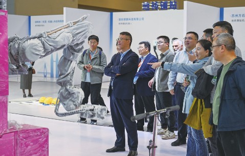 十月二十八日,在重庆悦来国际博览中心,观众在二○二五年世界城市日中国主场活动主题展览区参观智能建筑机器人。十月二十八日,二○二五年世界城市日中国主场活动在重庆开