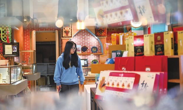 11月1日,市民在位于上海市南京东路的“进博集市城市会客厅”挑选商品。第八届中国国际进口博览会将于11月5日拉开帷幕,位于上海市南京东路的“进博集市城市会客厅”汇聚多种进博会同款好物,吸引不少市民游客前来购买。新华社记者陈浩明/摄