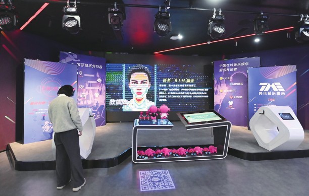 这是11月2日在成都市天府长岛数字文创园拍摄的腾讯音乐娱乐展台。天府长岛数字文创园是成都高新区围绕数字文创产业策划打造的专业园区。四川省成都市文创产业整体呈现良好发展态势,2024年全市数字文创核心产业实现营收3819亿元。新华社记者肖潇/摄