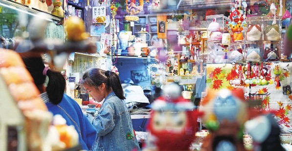 日前,顾客在上海市长宁区愚园路一家饰品小店选购商品。