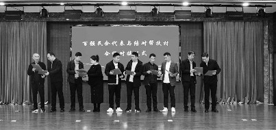 (图)“万企兴万村”山西行动片区交流推进会中,举行百强民企代表与结对帮扶村合作对接仪式。山西省工商联供图