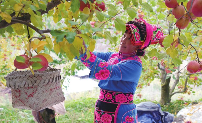 目前,四川茂县南新镇种植的1000余亩苹果迎来收获季。该镇通过线上电商平台销售、线下采摘游等渠道,让苹果变成“致富果”,带动村民增收。新华社发兰红光/摄