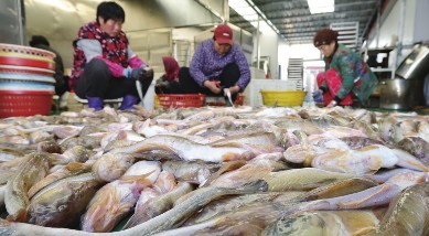 11月30日,河北省唐山市丰南区黑沿子镇的渔民在加工海鱼。初冬时节,河北省唐山市丰南区黑沿子镇的渔民利用晴好天气,将捕捞的鱼虾等海产品进行加工、晾晒,供应市场。新华社记者杨世尧/摄